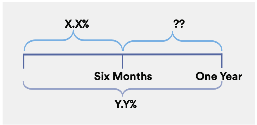 For example, if a 1-year security can be purchased at a yield of 4.42% and a 6-month investment at a yield of 4.92%, then the 6-month security needs to be reinvested upon maturity for 6 additional months at an approximate yield of 3.92% to “breakeven” with purchasing a 1-year security at a yield of 4.42%: