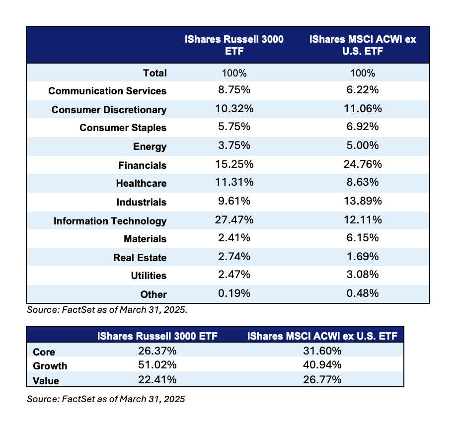 Industry and regional economic diversification: From a sector perspective, the major U.S. equity indices are dominated by technology stocks. In fact, technology issues, which have fared particularly well over the last 15 years, constitute about 40% of the S&P 500 and 33% of the Russell 3000. Meanwhile, the major international equity indices provide greater exposure to other sectors which represent significant parts of the global economy and trade at much lower valuations than technology stocks. In fact, two of the major international indices are dominated by Financials (approximately 23% for MSCI EAFE and 24% for MSCI ACWI ex-U.S.) and Industrials (18% for MSCI EAFE, 14% for MSCI ACWI ex-U.S.) Also, when it comes to geographical exposure, these international equity indices maintain allocations to the United Kingdom, France, Japan, Taiwan, and China, each of which offer unique growth opportunities and regional economic diversification.