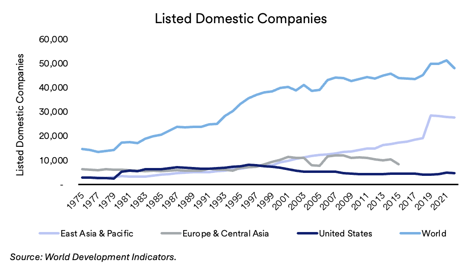 Another advantage of investing internationally is the potential access it provides newly formed public companies. U.S. companies have gone through a period of consolidation and as a result, initial public offerings (IPOs) haven’t been particularly robust in recent years. Also, at least anecdotally, some companies seem to be staying private for a longer period due to the costs associated with becoming public. This has resulted in fewer public companies in which to invest.