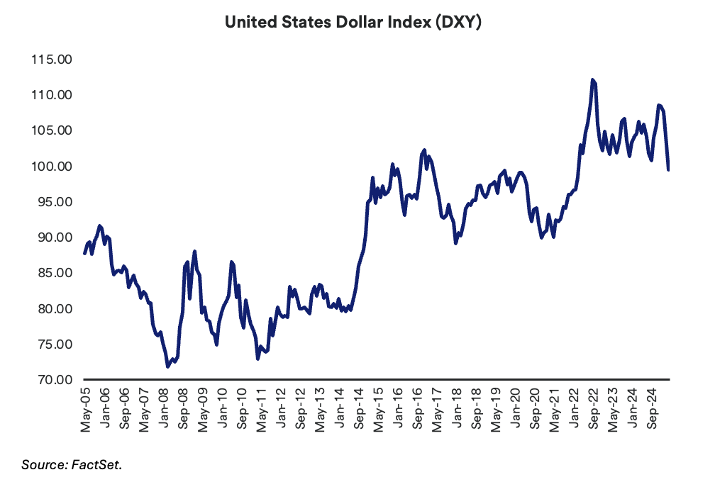 U.S. equities have significantly outperformed international equities since the GFC primarily due to higher profit margins and more consistent earnings growth across U.S. companies, and a heavier tilt to growth stocks in domestic indices, which have outperformed more value-oriented stocks over the last decade.